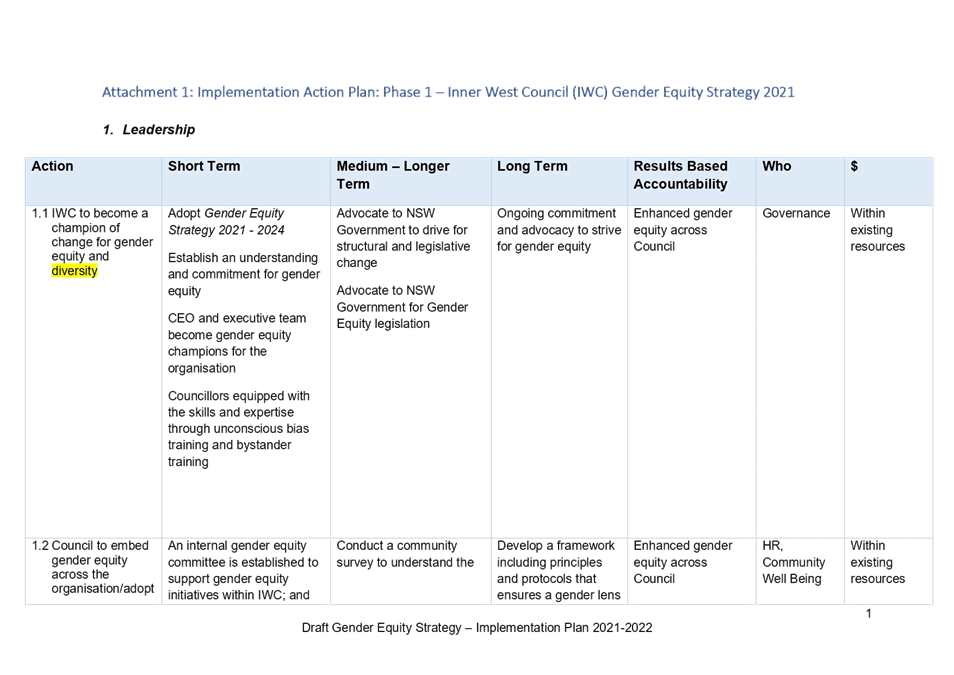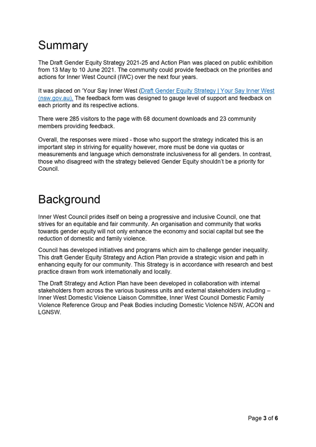 C0721(2) Item 1 Adoption of Inner West Council Gender Equity Strategy and Action Plan 32