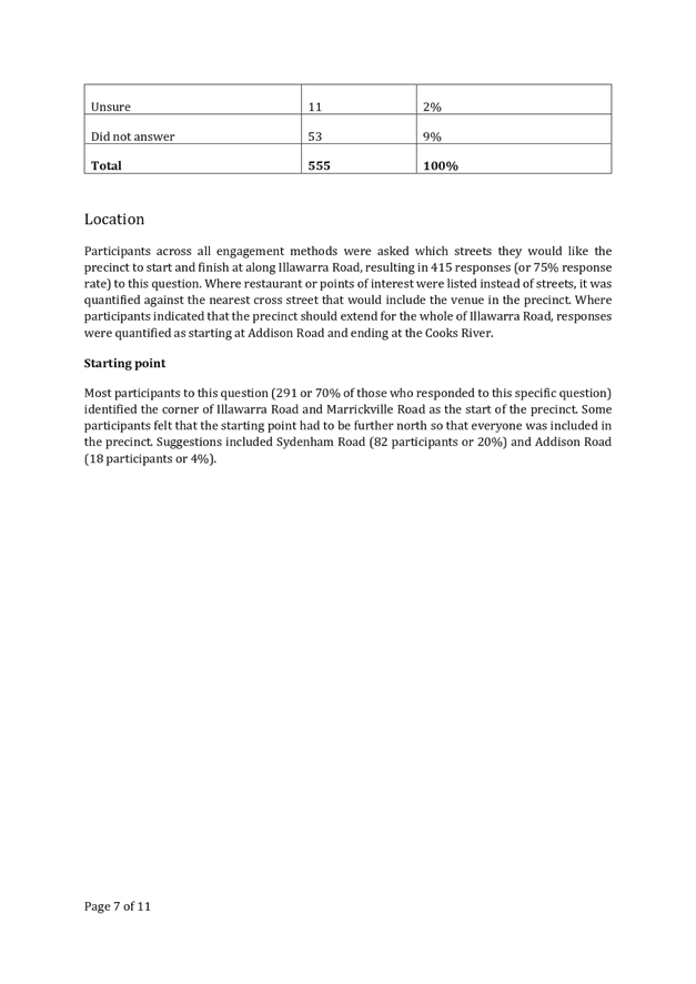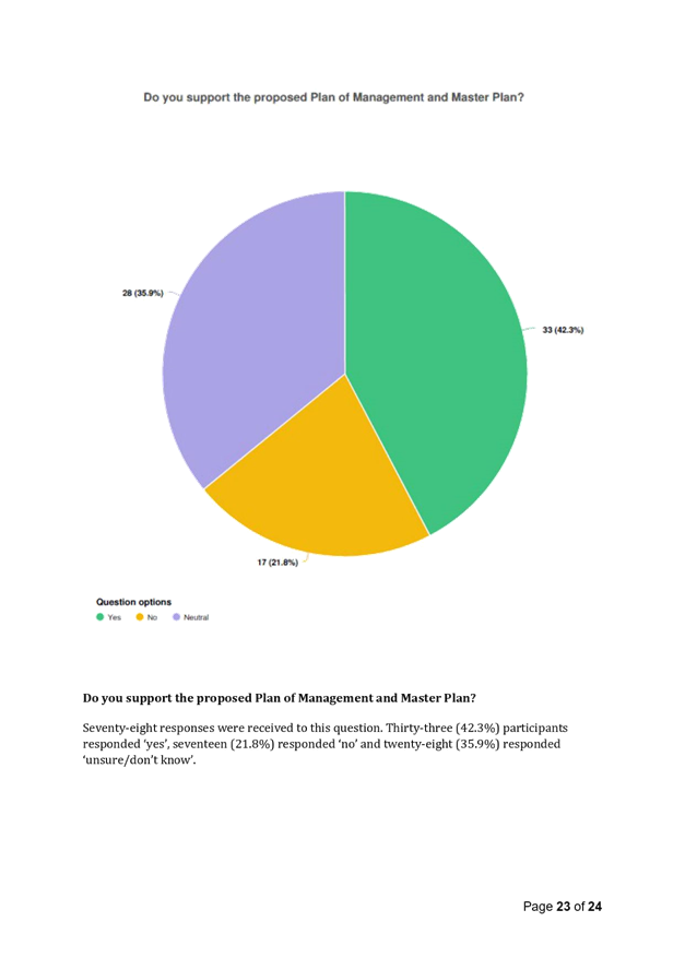 In terms of the provision of future public toilets within the park, this opportunity was widely supported by the community. A total of 76% of respondents supported the proposed location for the public toilets (refer Fig 1.0) with the location being recommended following consultation with the NSW Police. Key issues assessed in determining the public toilet location included: