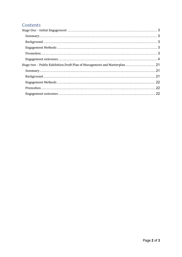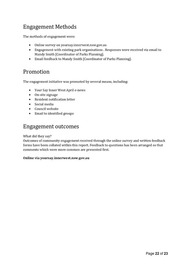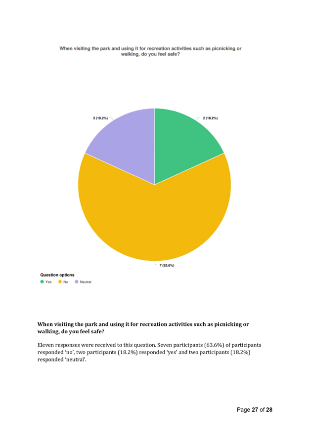 In November 2018, Council undertook significant community engagement in relation to community issues concerning park safety within the park. Community engagement included: