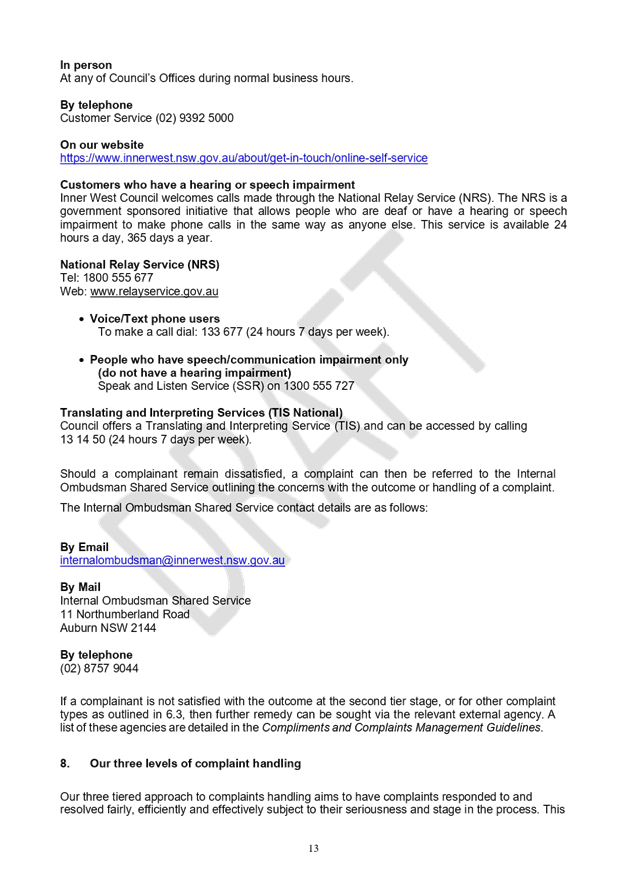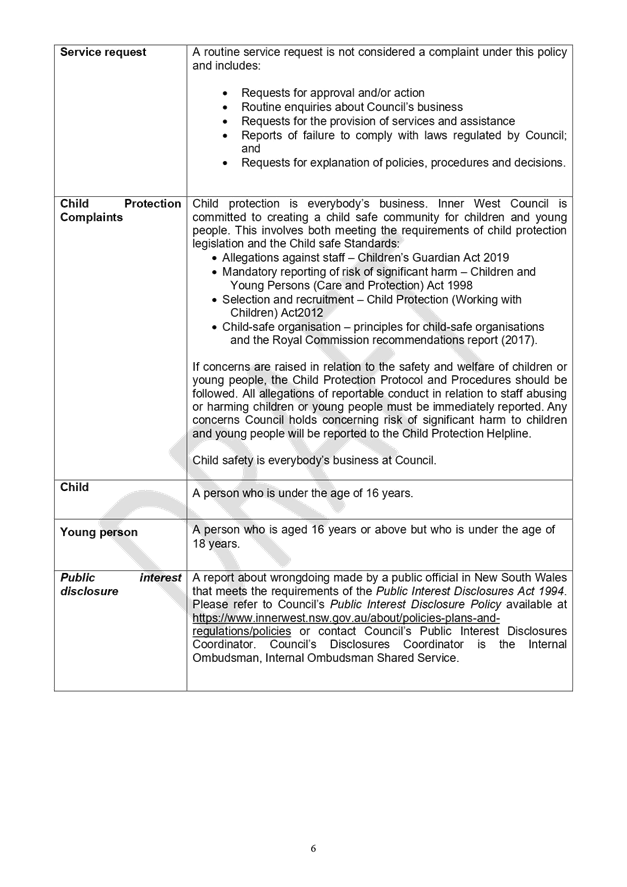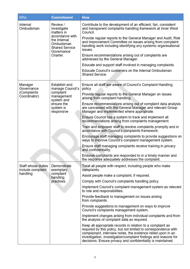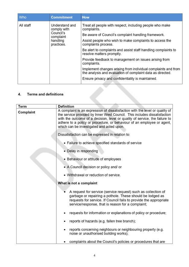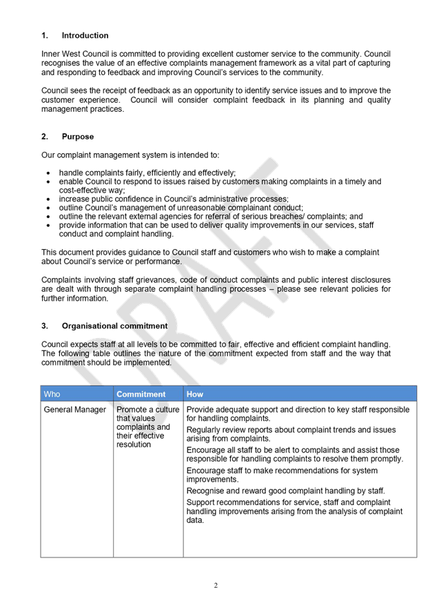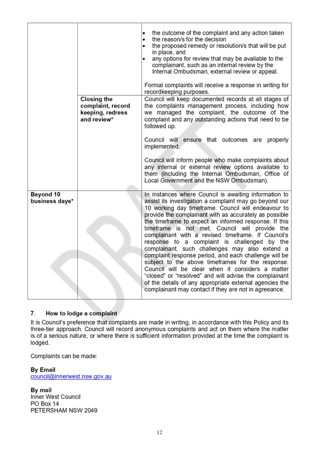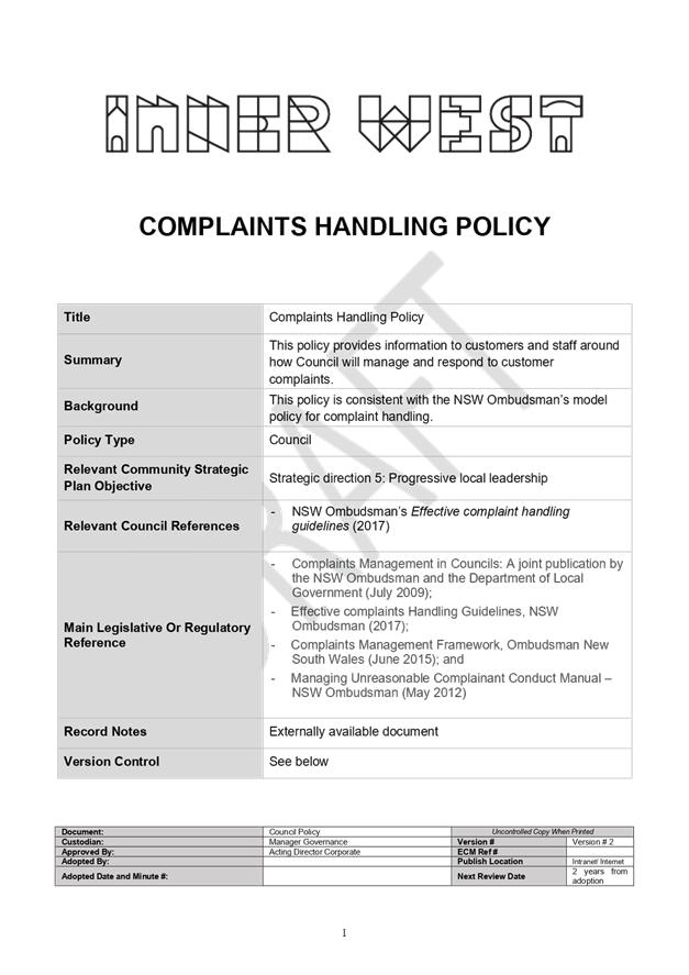 The policy is predicated on Inner West Council’s commitment to providing outstanding customer service and the value that an effective complaints management framework plays in helping to identify service issues and improvements to the customer experience.