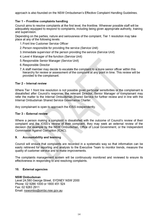 C0721(2) Item 5 Review of Inner West Council Complaints Handling and Draft Complaints Handling Policy 308