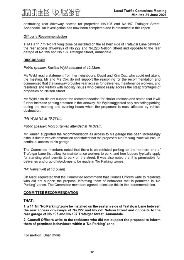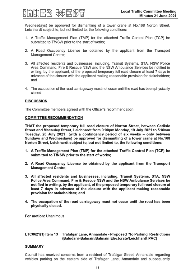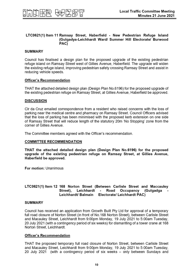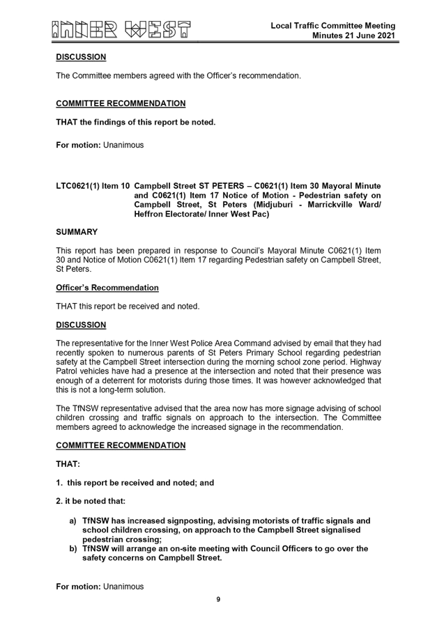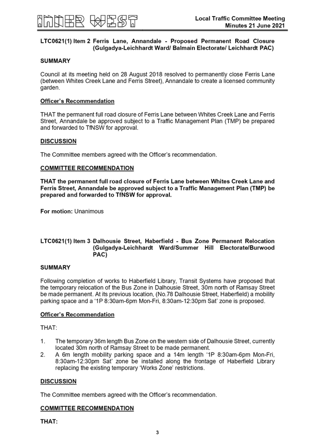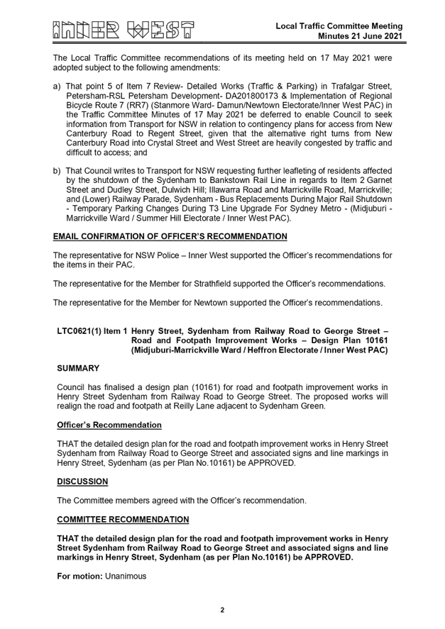 Local Traffic Committee Minutes - 21 June 2021 |