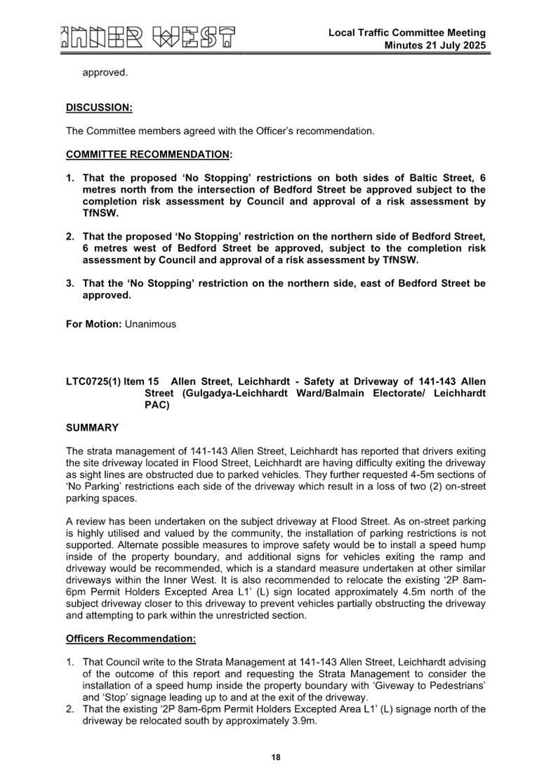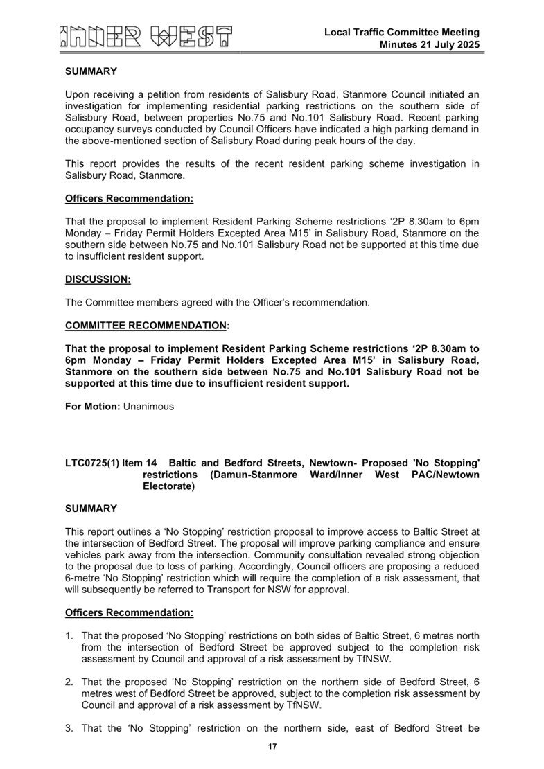 C0825(1) Item 16 Local Traffic Committee Meetings - 16 June 2025 and 21 July 2025 140