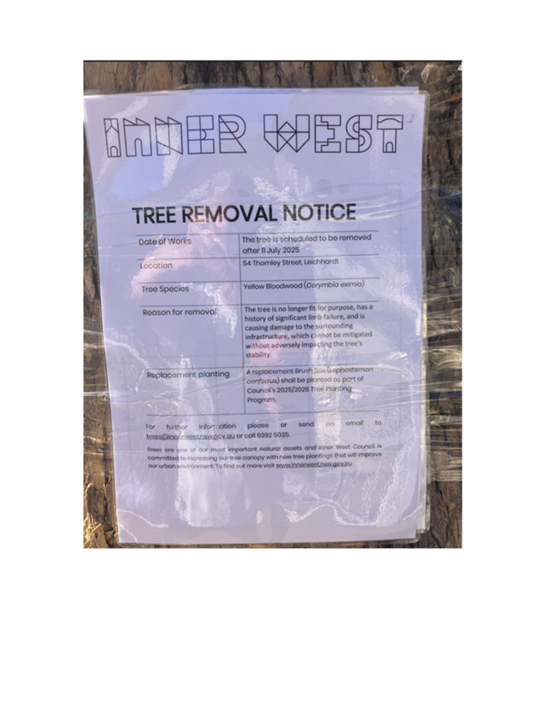 C0825(1) Item 42 Notice of Motion: Tree Removal at 54 Thornley Street Leichhardt 836