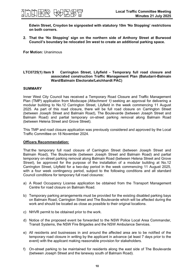 C0925(1) Item 3 Local Traffic Committee Meetings - 16 June 2025 and 21 July 2025 68