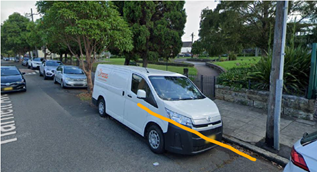 The existing parking arrangement (Figure 1) currently allows unimpeded access to the driveway of No.12 Church Street, Marrickville in the southbound direction. However, vehicles have been observed to park in the 2m kerb space at the rear of 43 Warren Road. This parking behaviour overhangs the off-street parking of 43 Warren Road or overhangs into the ‘No Parking area’.