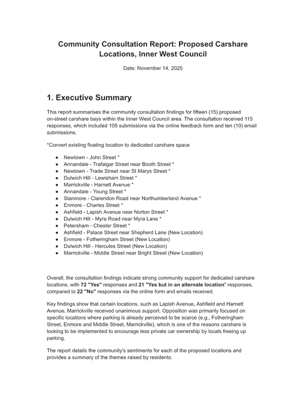 Based on the community consultation, it is recommended that ‘2P 8am-6pm Mon-Fri Permit Holders Excepted Area M2’ with angled parking between number 89 and 103a be approved in Cary Street. It is also recommended that the proposed restrictions on Richardson’s Crescent and Carrington Road be noted and that further consultation with sporting clubs of Mackey Park and surrounding streets of Renwick Street, Warren Road, Ruby Street and Schwebel Street be undertaken prior to making a final decision.