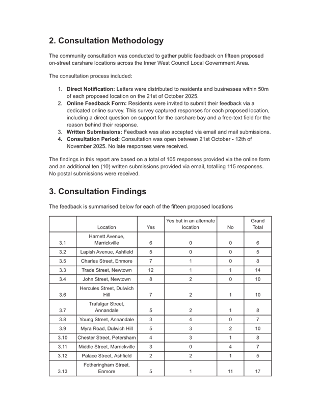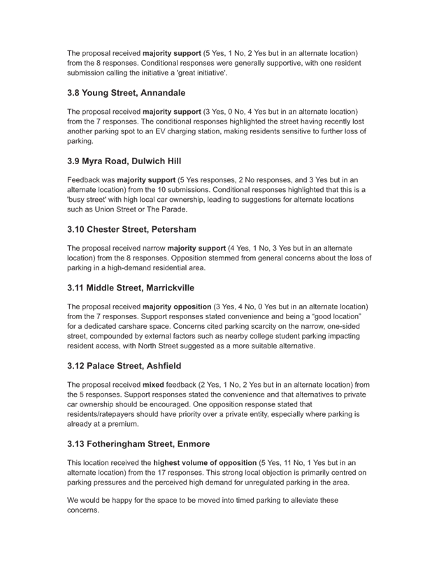 parking availabilities in the surrounding streets. Stakeholder consultation