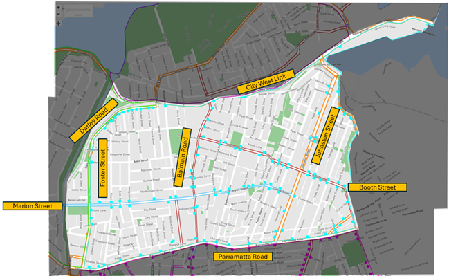 g. Install kerb blisters in Annandale Street at Parramatta Road.