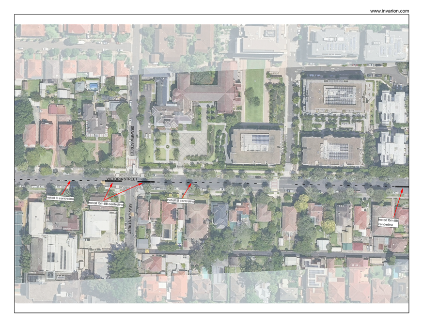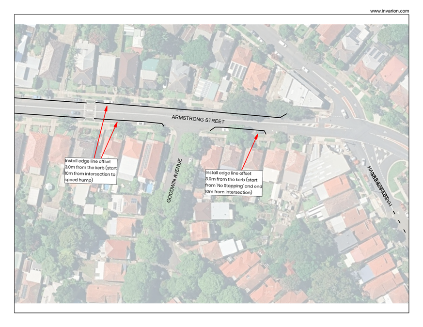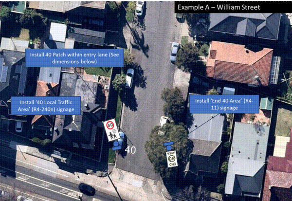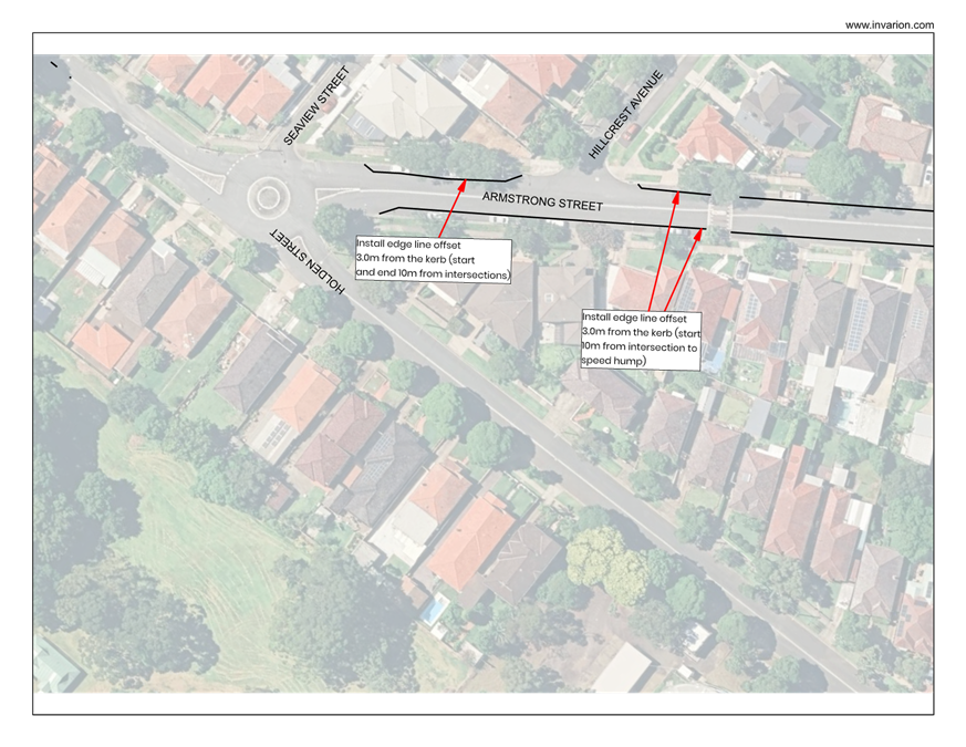 Recommended to install 45-degree angled parking on both sides of Cary St between Carrington Rd and Excelsior Pde to create a chicane and slow the traffic. |