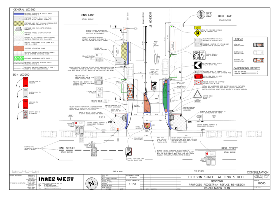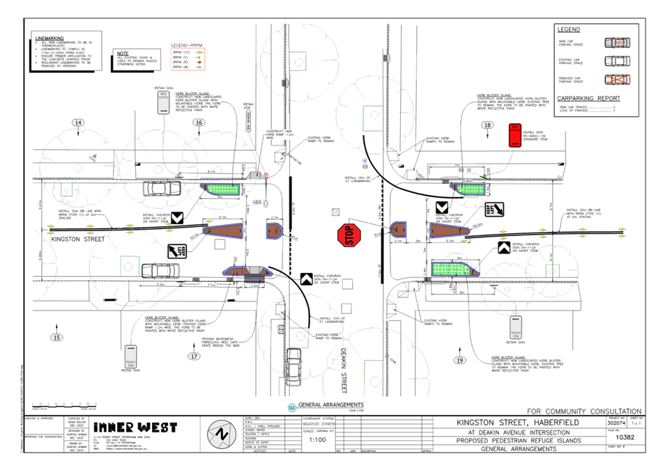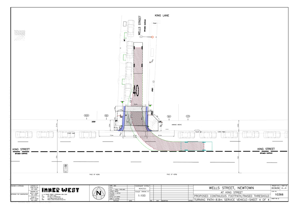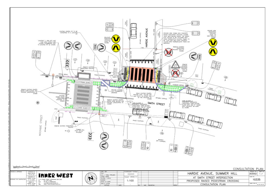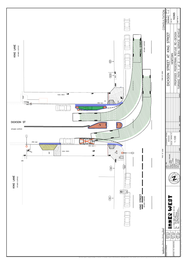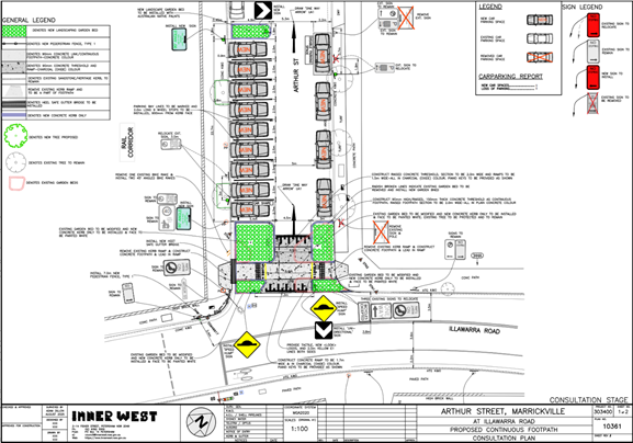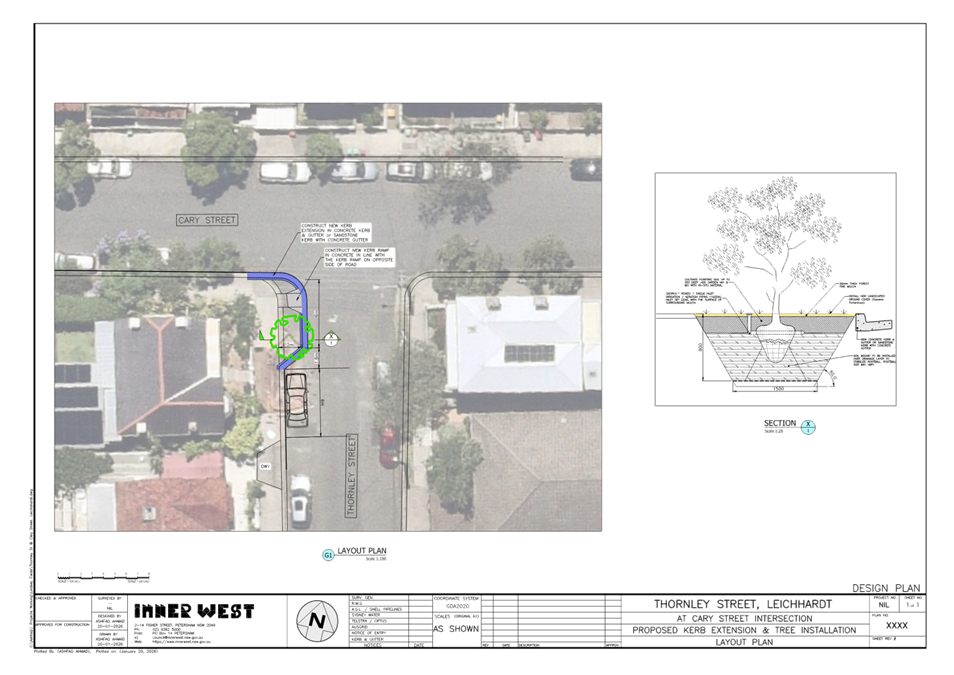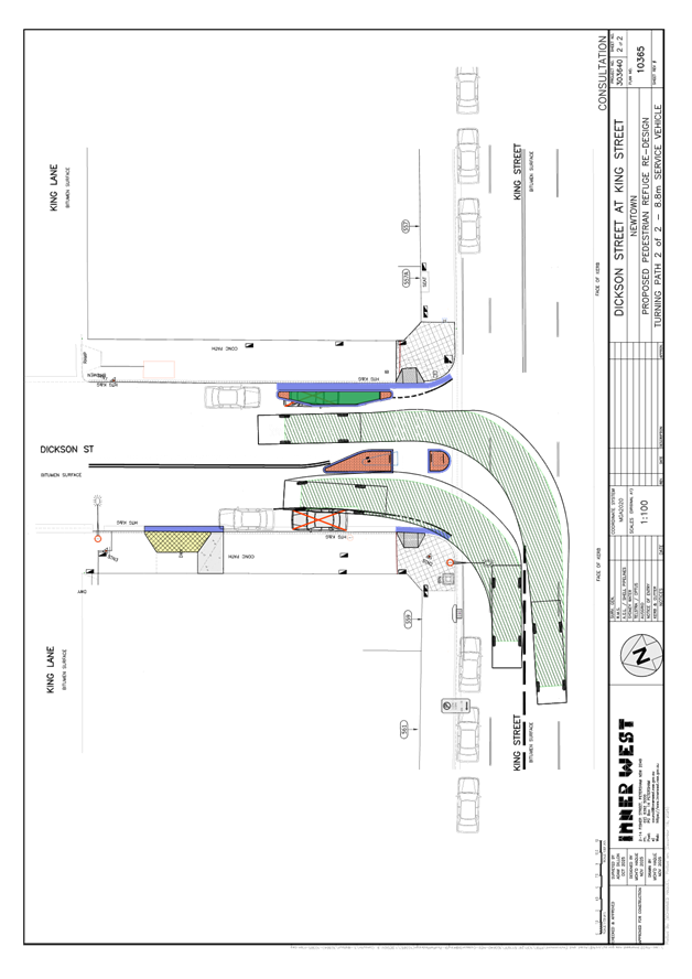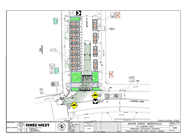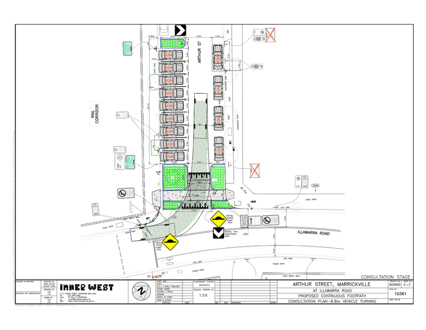 j. Install kerb extensions on all 4 legs of the Annandale Street/Albion Street