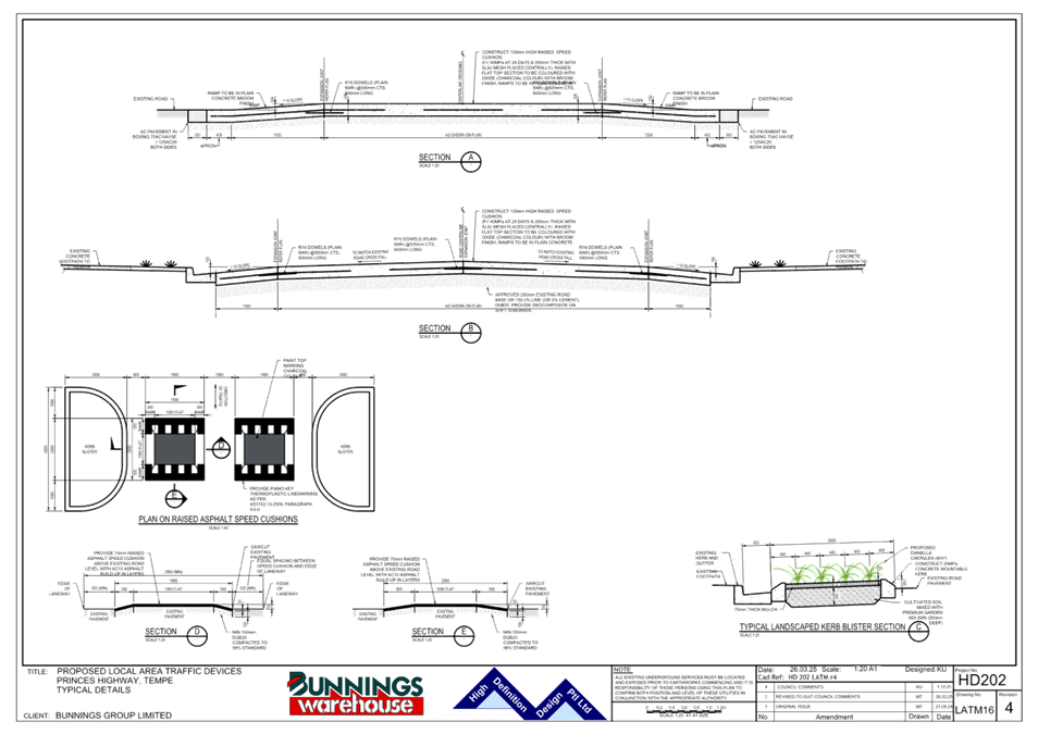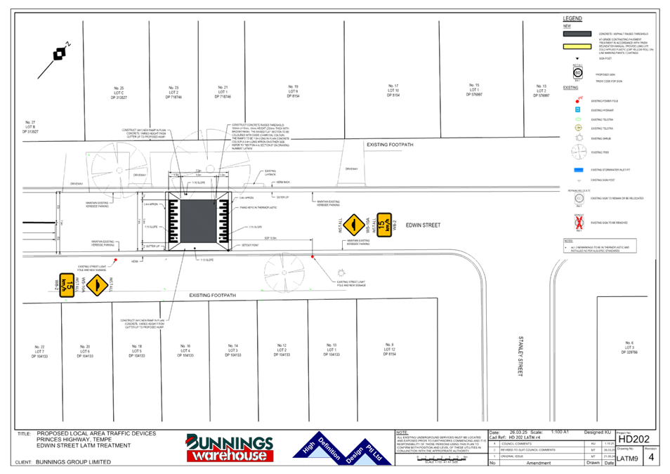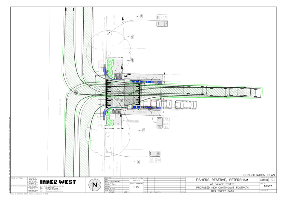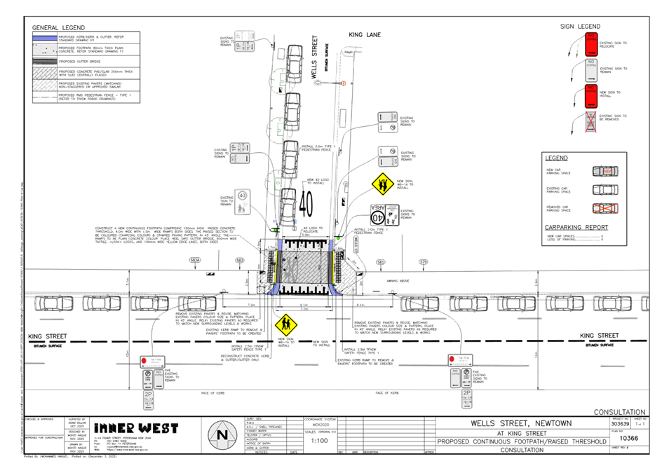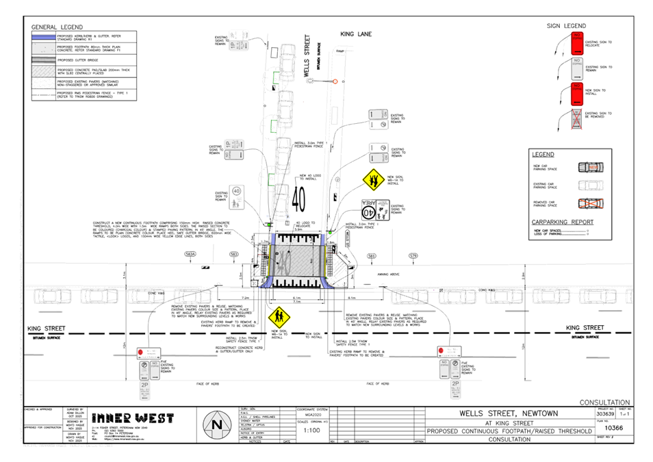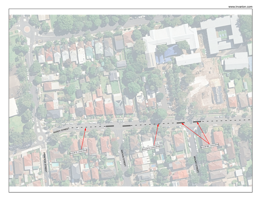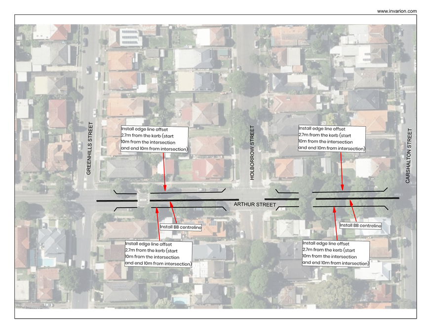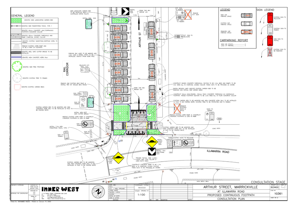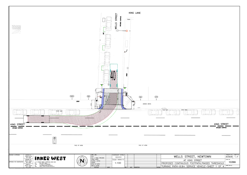 j. Install kerb extensions on all 4 legs of the Annandale Street/Albion Street