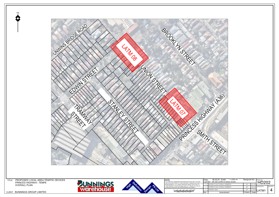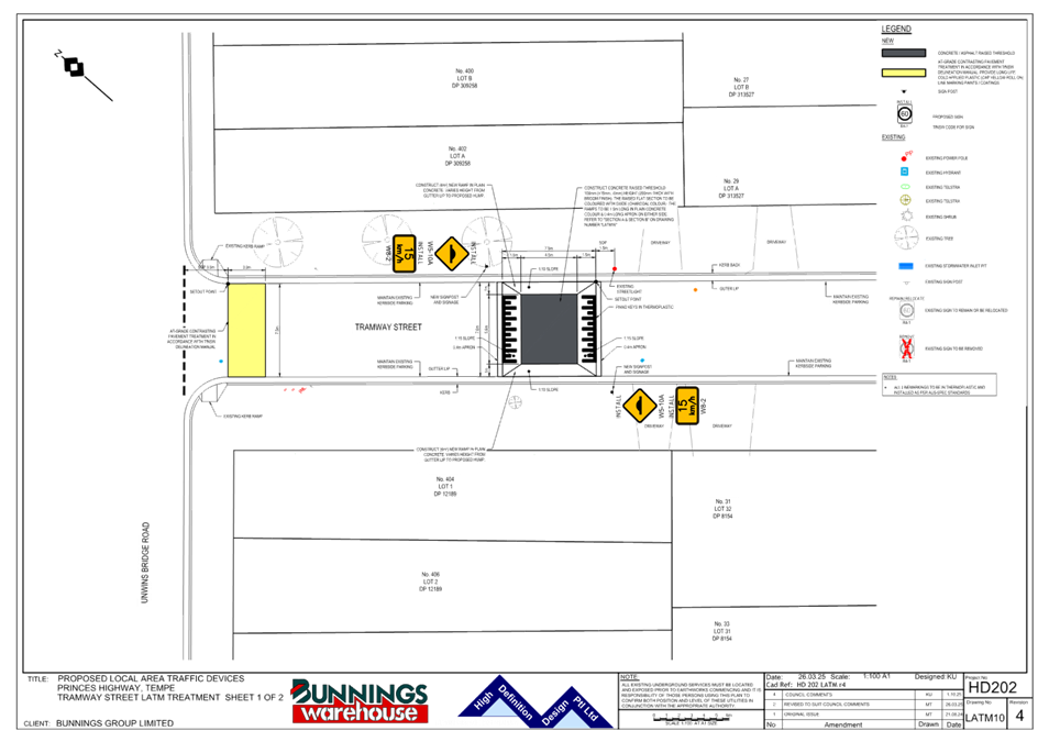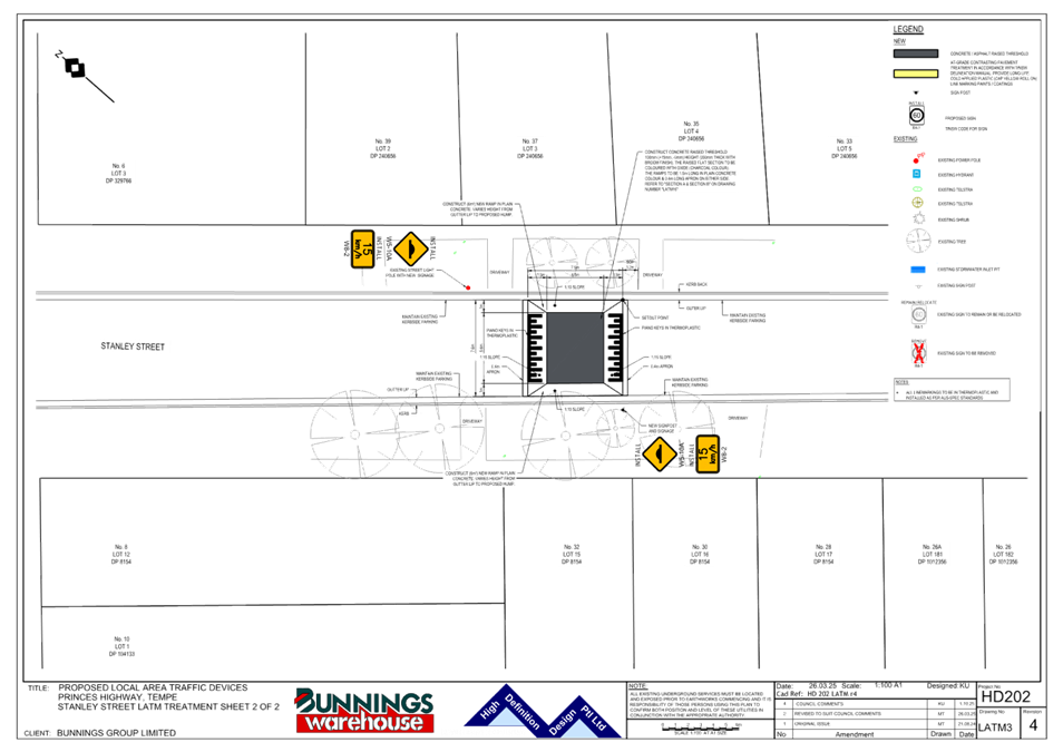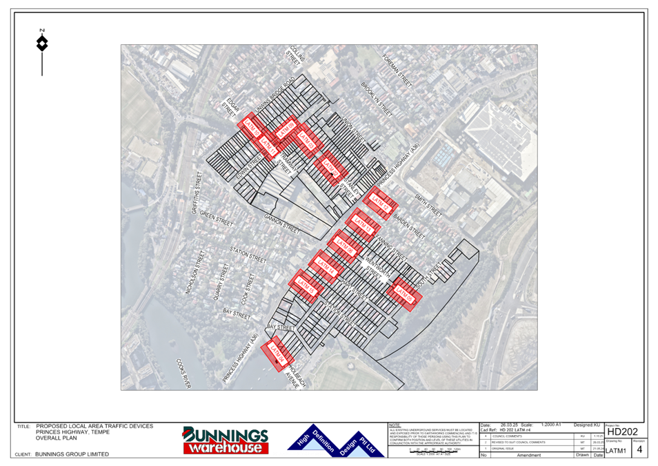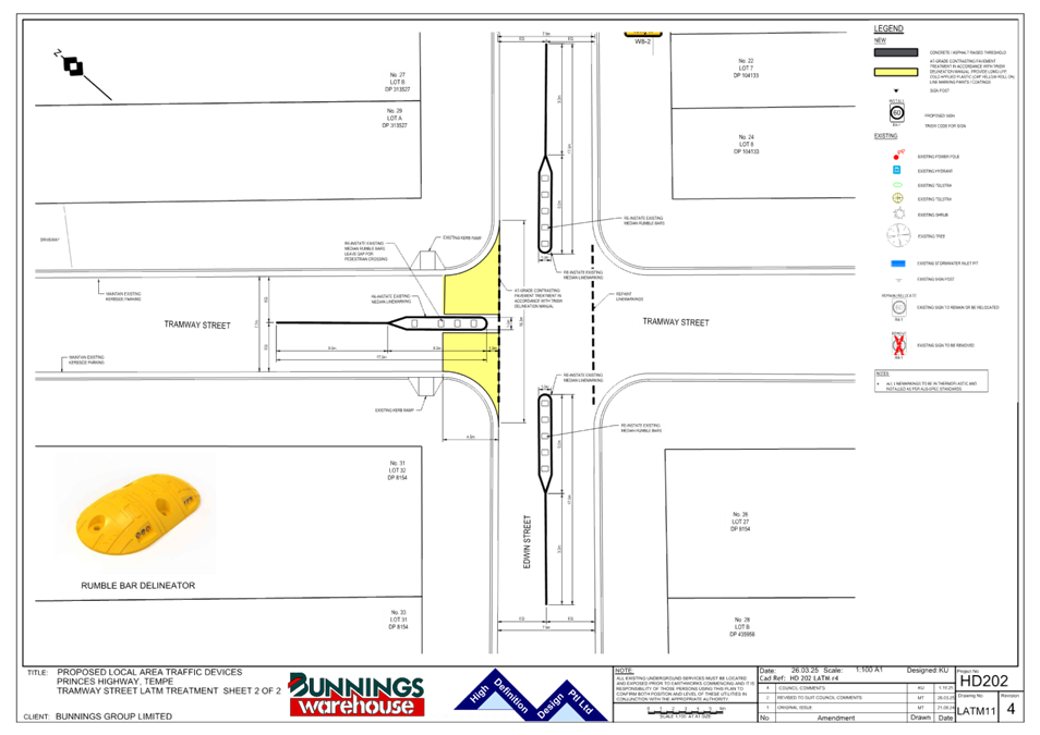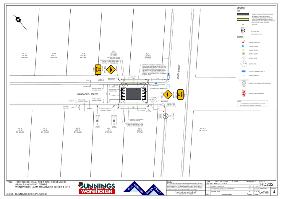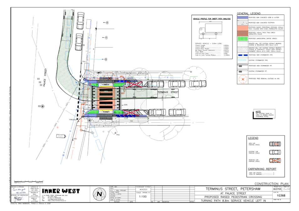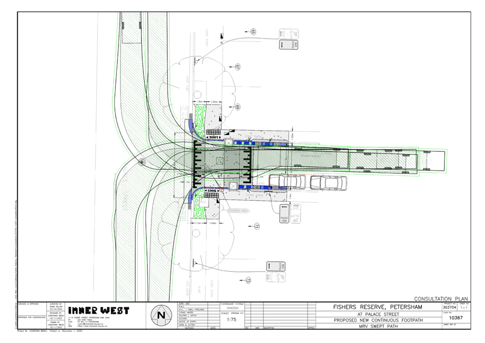j. Install kerb extensions on all 4 legs of the Annandale Street/Albion Street