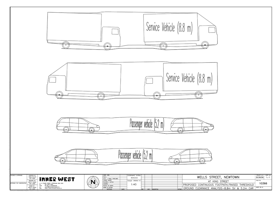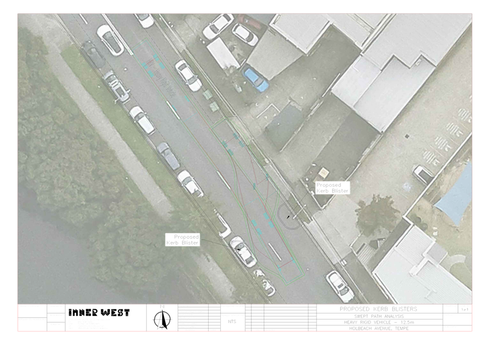 A swept path analysis of the existing arrangement has been completed and is shown in the figure below.