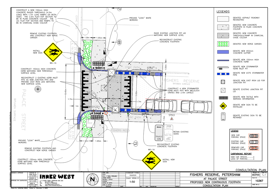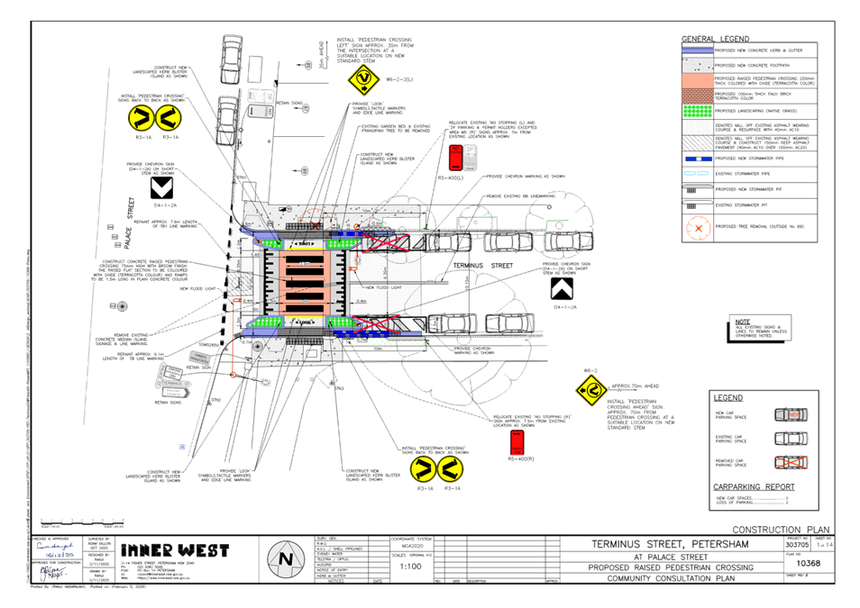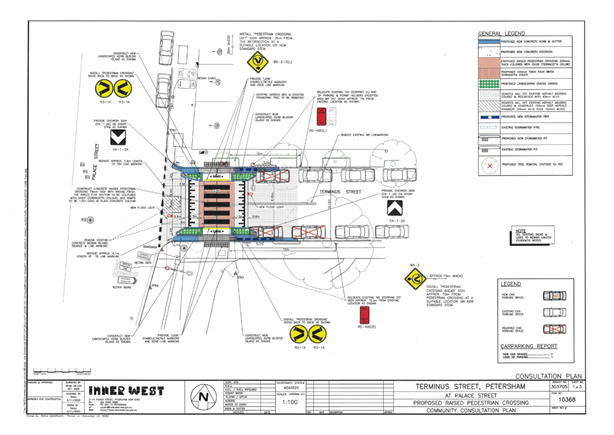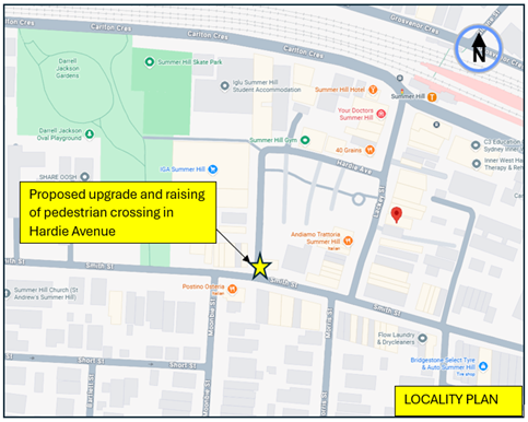 i. Install raised pedestrian (zebra) crossing in Piper Street west of Annandale
