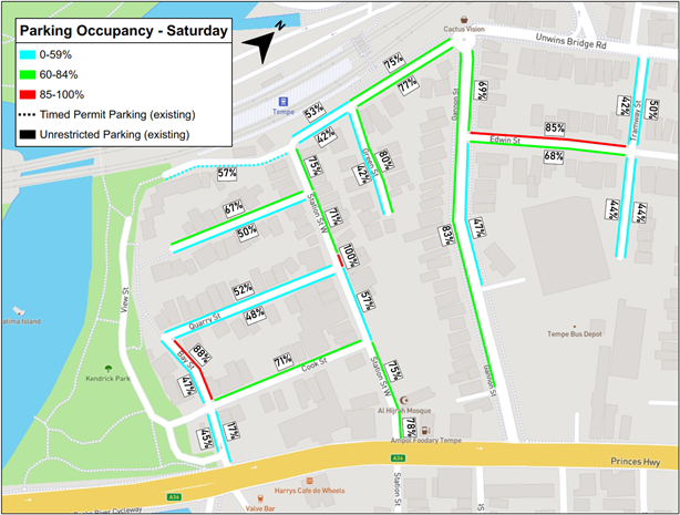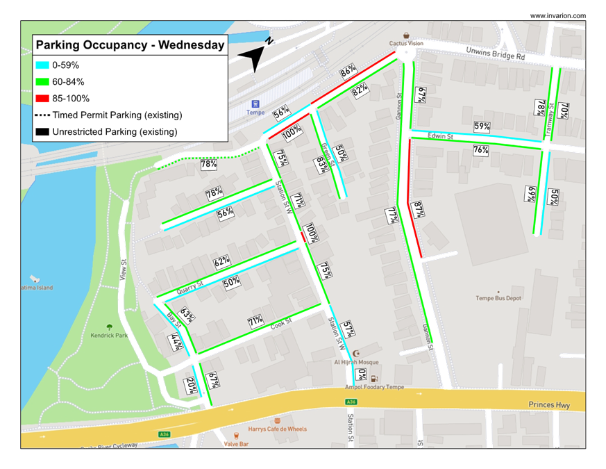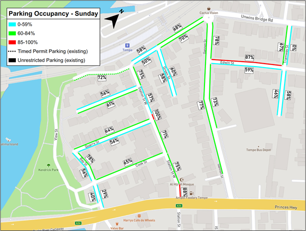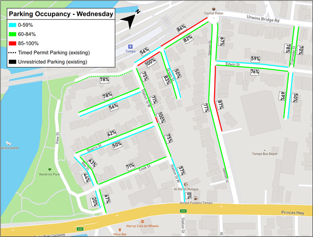 Council officers have performed a parking occupancy survey and have found that the surrounding streets have high parking occupancies due to commuters from Tempe Station. |