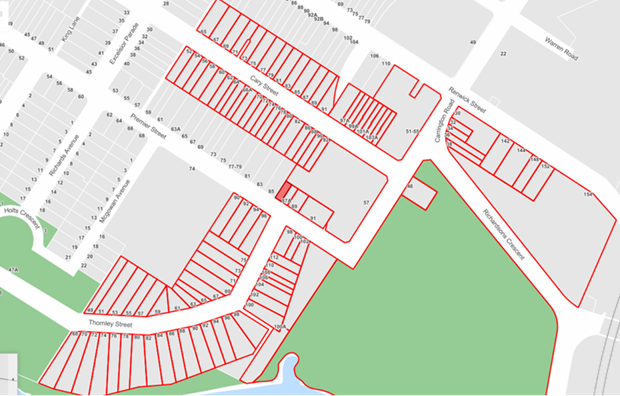 Renwick Street, Warren Road, Ruby Street and Schwebel Street as it is