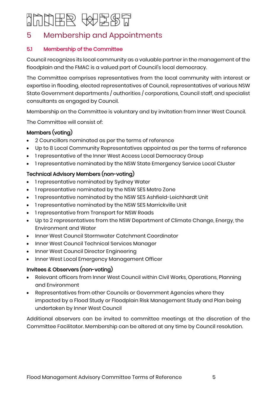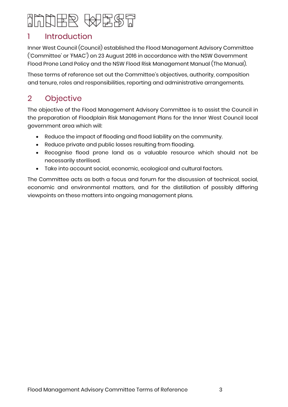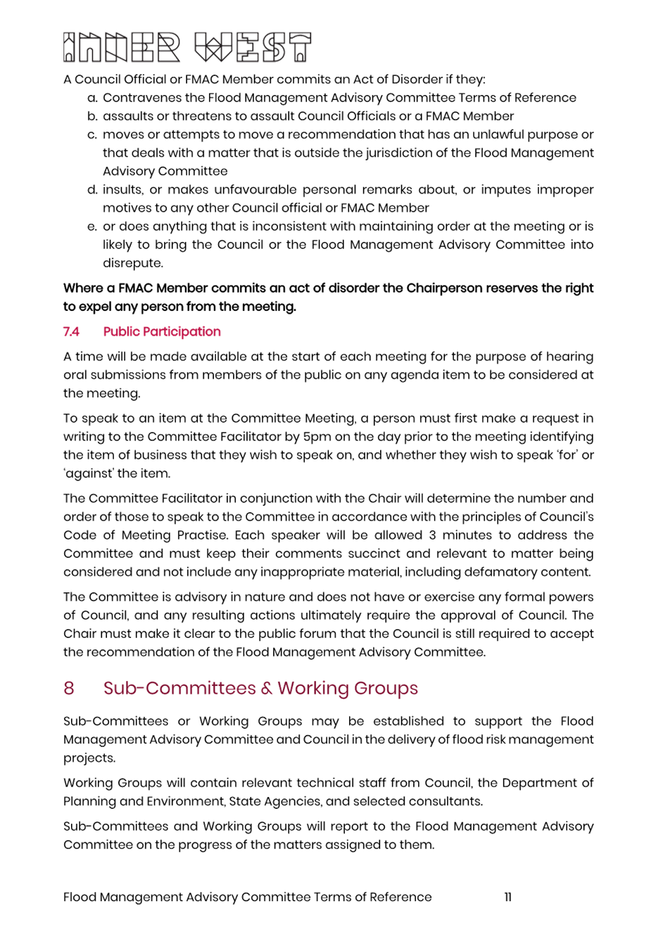 The terms of reference have been further amended to incorporate arrangements that detail how members of the public may speak to an agenda item at the start of any Flood Management Advisory Committee meeting.