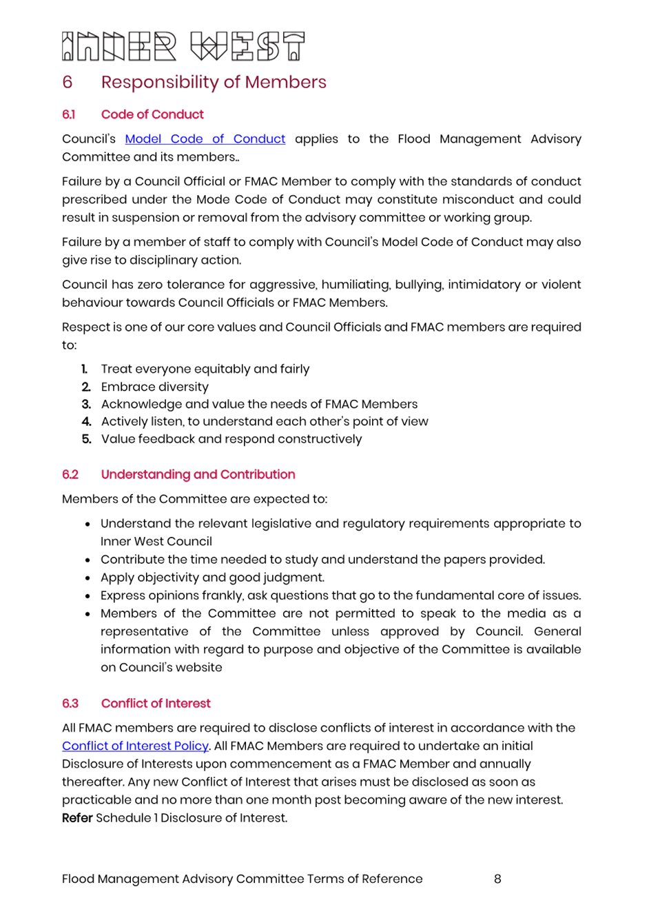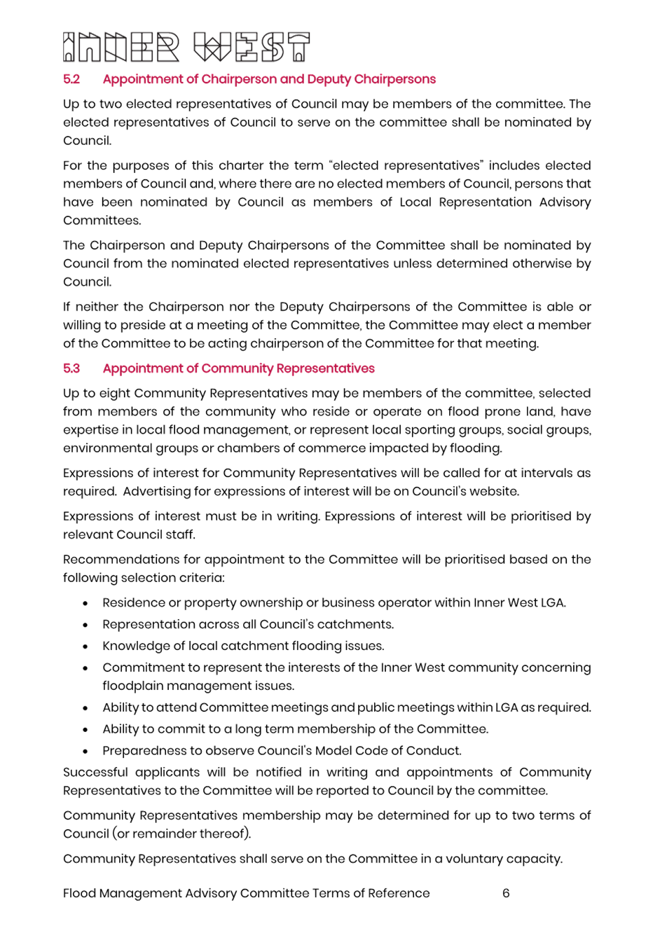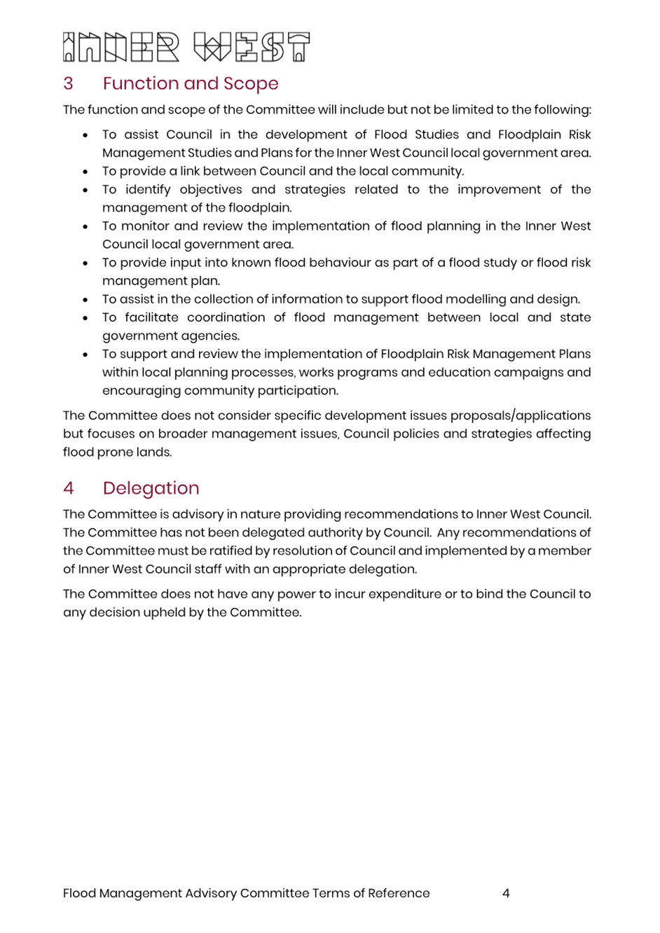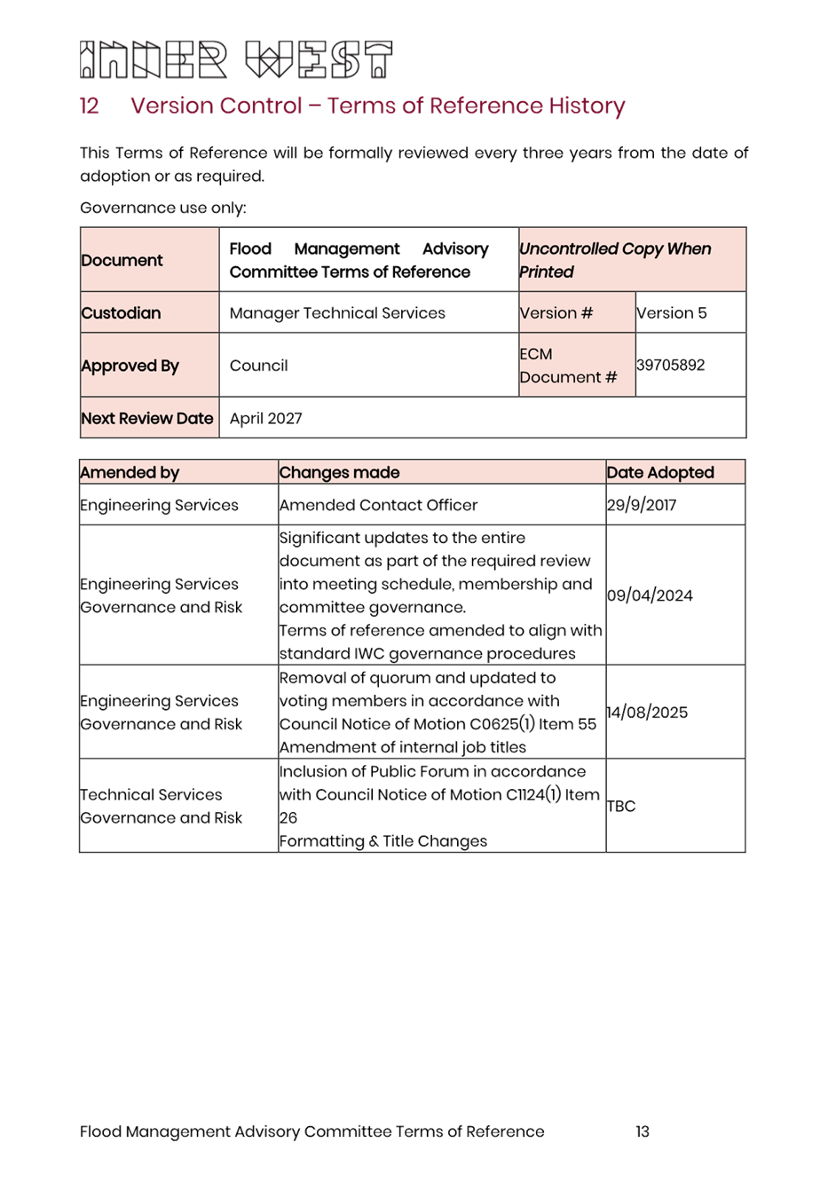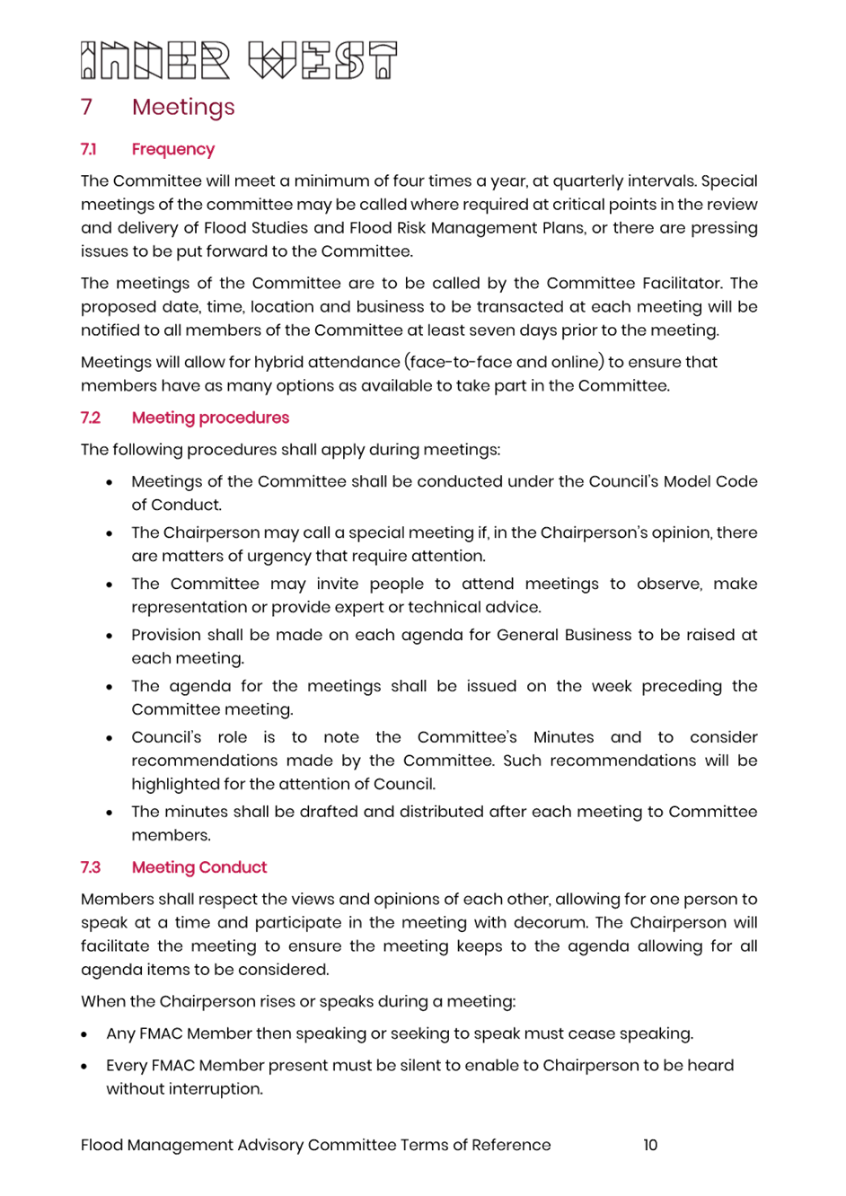 In November 2025 the Flood Management Advisory Committee resolved to have the Committee terms of reference further amended to enable members of the public to address the Committee on any agenda item.